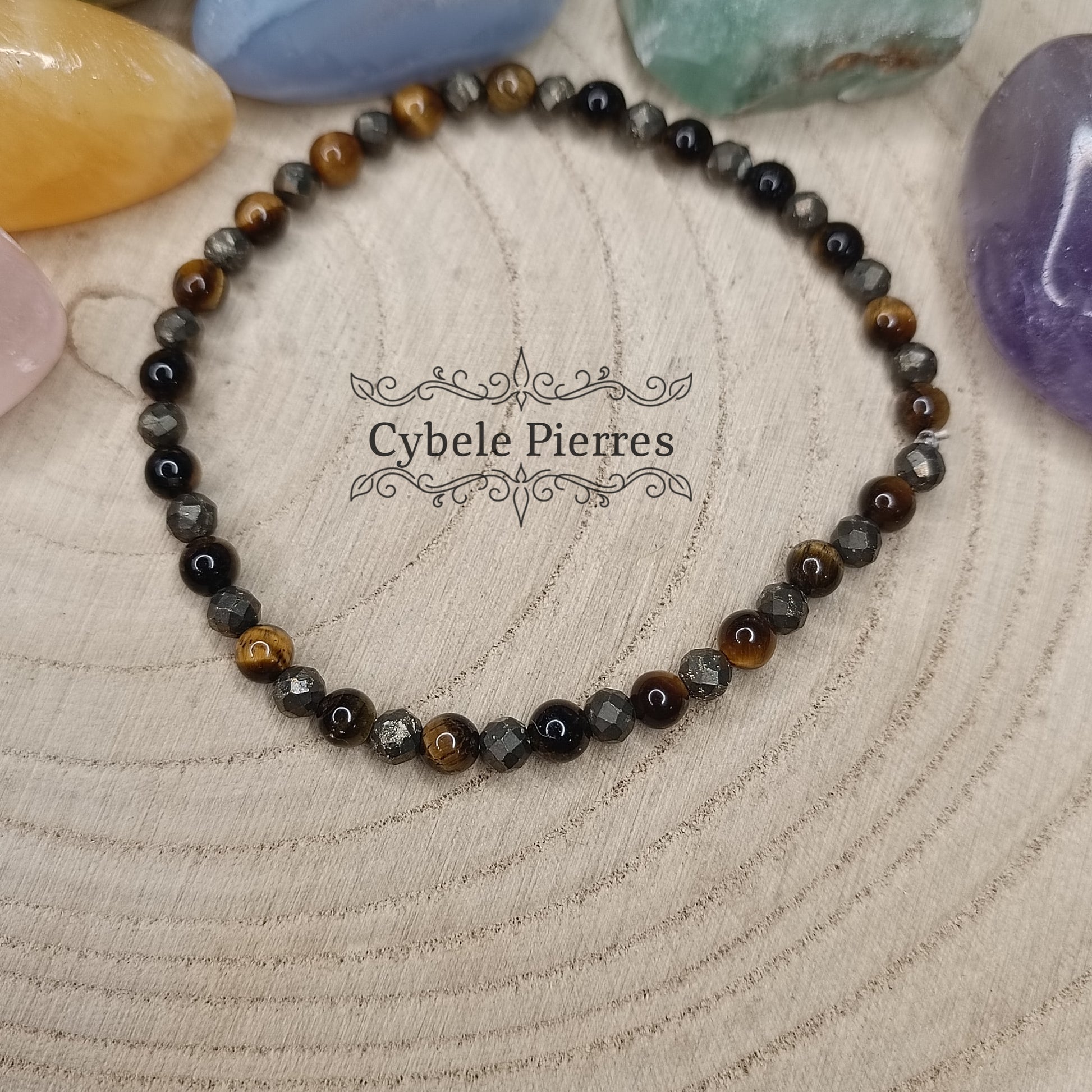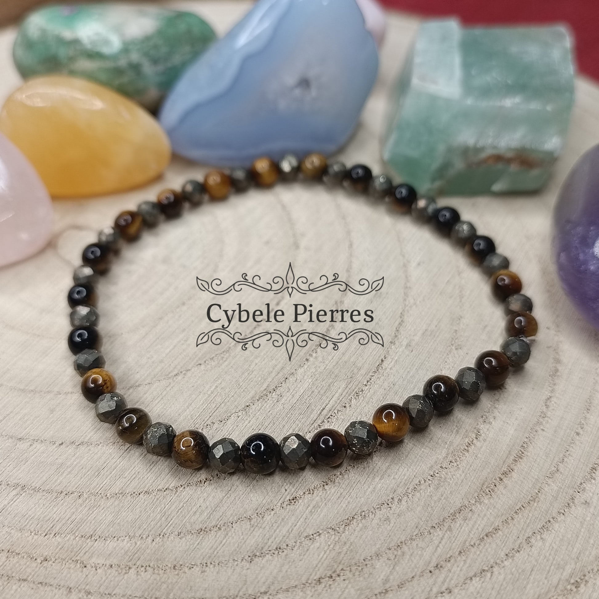 Bracelet Fortune -Oeil de tigre et Pyrite facettée (4mm) - 18cm