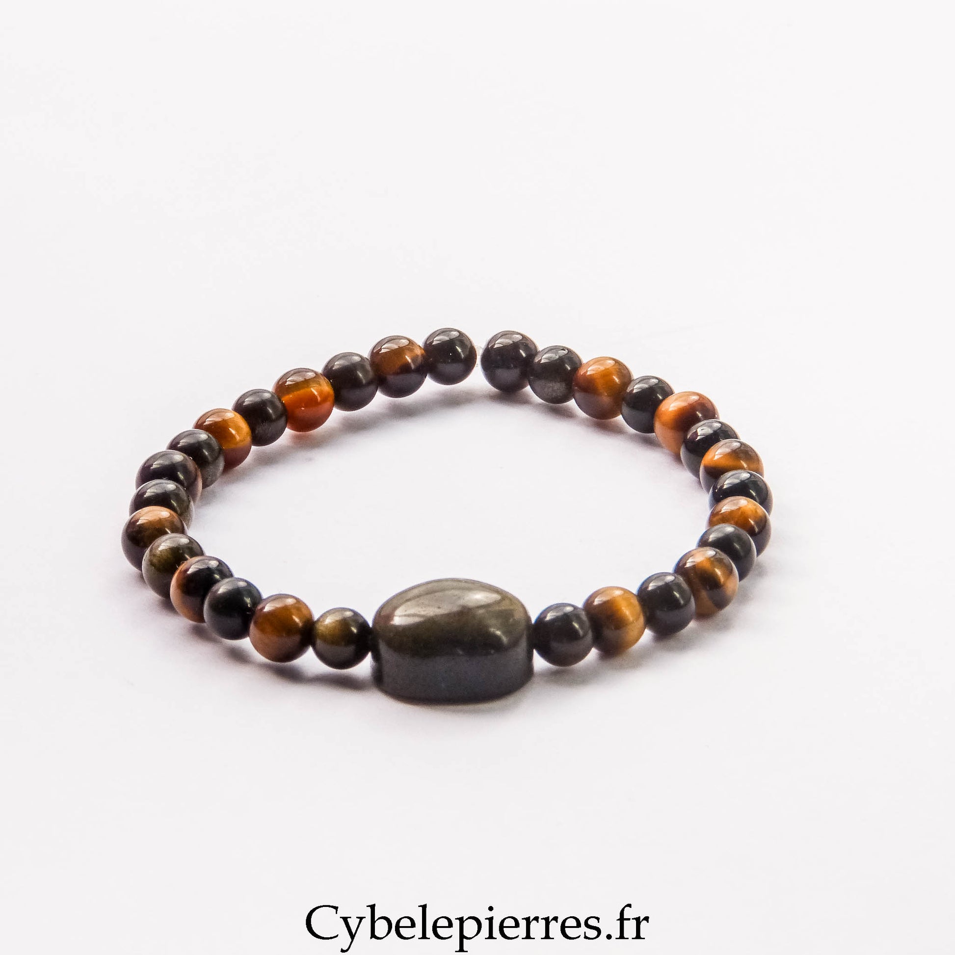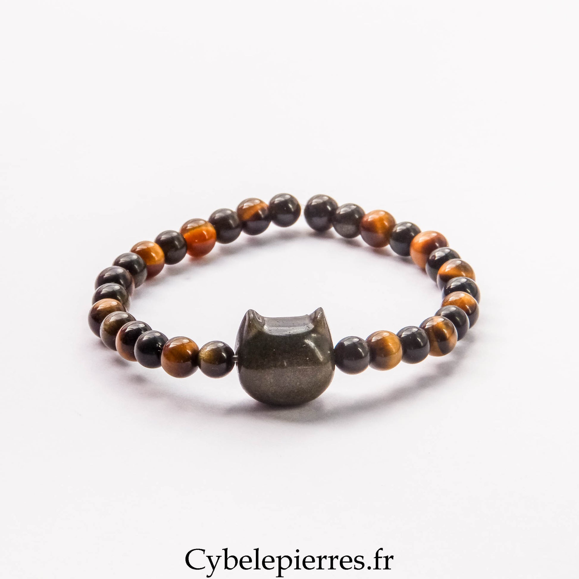 Perle centrale en obsidienne dorée – tête de chat : symbole de vigilance et d’indépendance, elle apporte une touche de caractère et renforce l’énergie protectrice du bracelet.