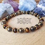 Bracelet Prospérité - Pyrite & Oeil de tigre (8mm et 4mm) 17cm