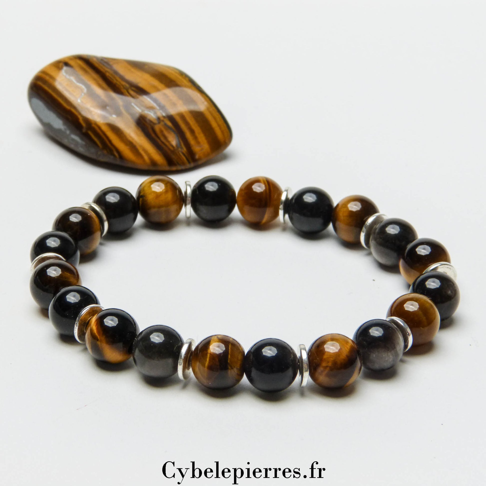 Ce bracelet associe l'Obsidienne argentée et l'Œil de tigre, deux pierres puissantes pour la protection, la clarté d'esprit et la force intérieure. Il aide à dissiper les peurs, à développer l’intuition et à favoriser le courage face aux défis du quotidien.