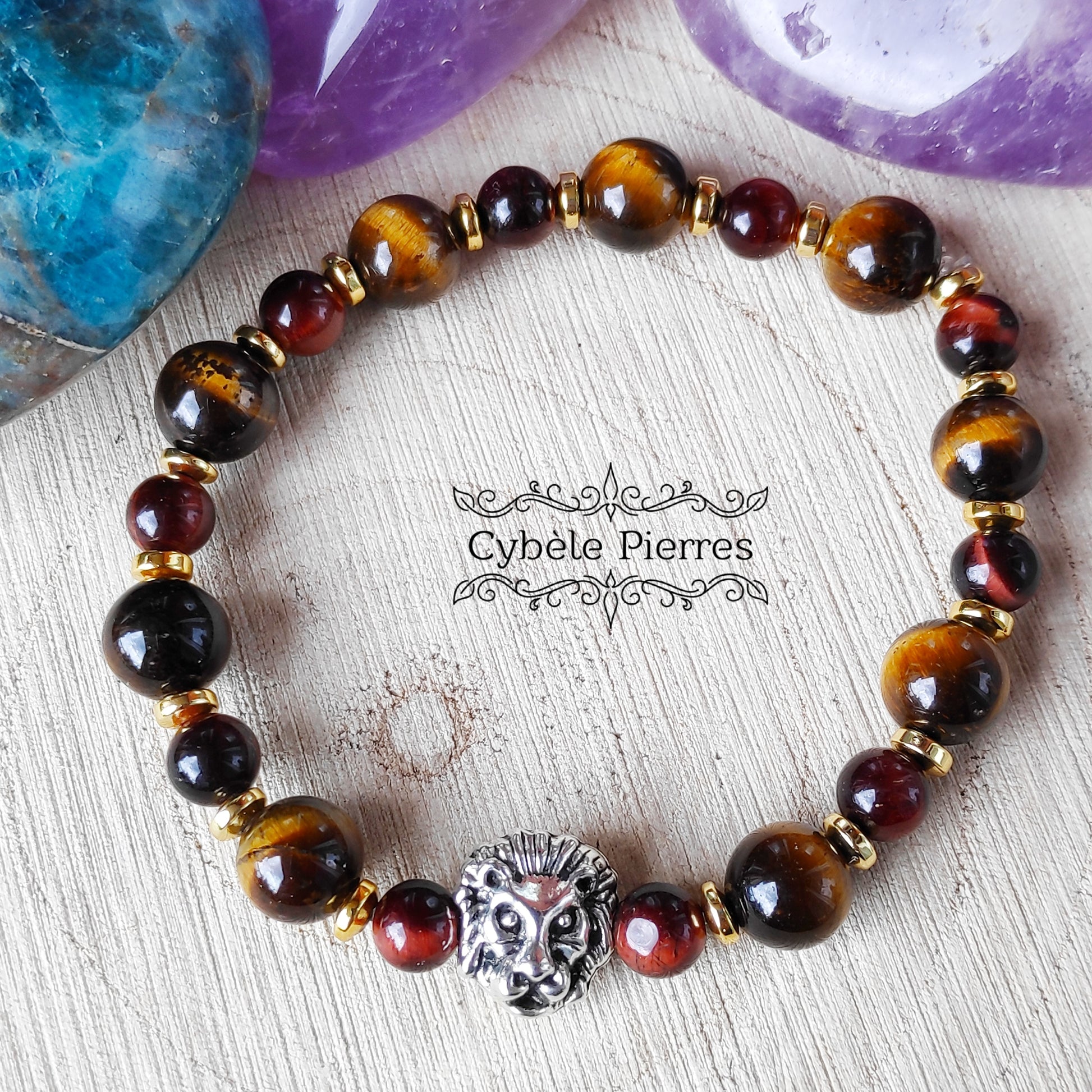 Bracelet Simba – Œil de Taureau (6 mm) & Œil de Tigre (8 mm) - 18 cm | Force et Protection