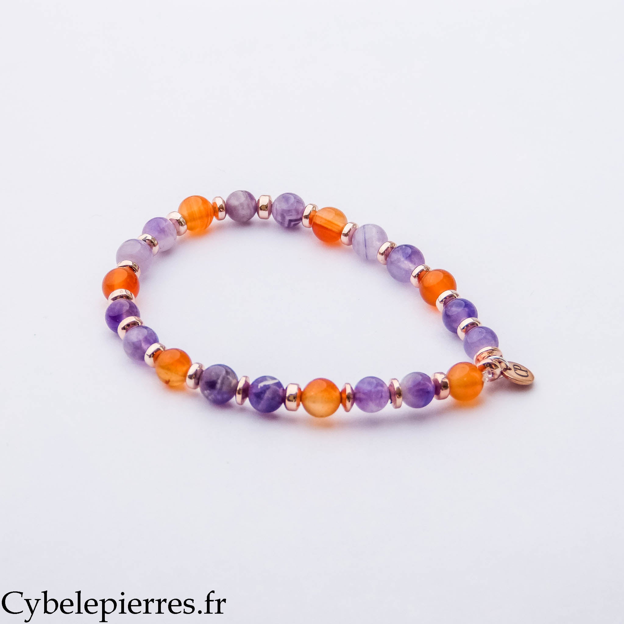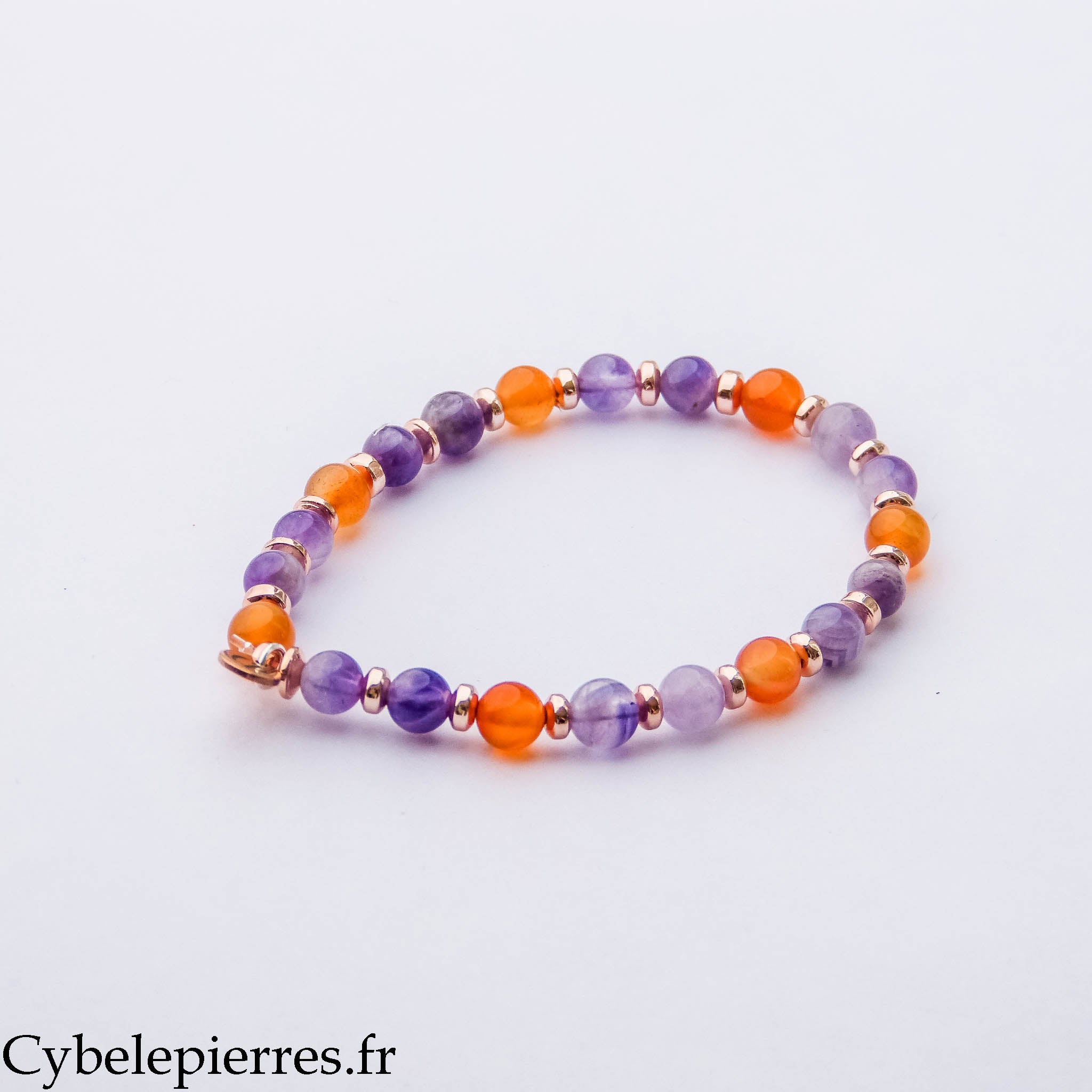 Bracelet Mystère – Cornaline et Améthyste (6 mm) – 18 cm | Créativité, Intuition et Harmonie