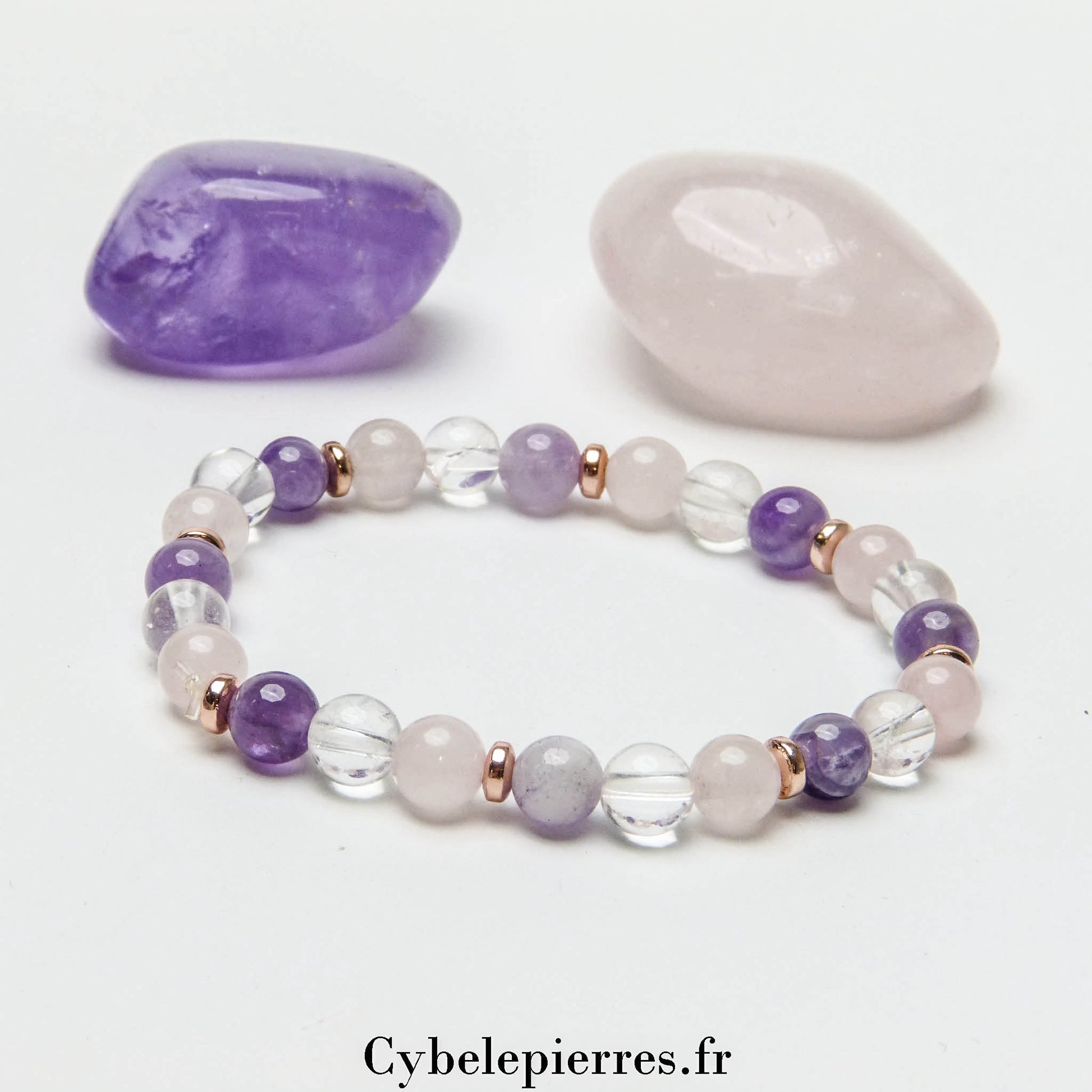 Bracelet Imagination - Quartz rose, Cristal de roche et Améthyste (6mm)