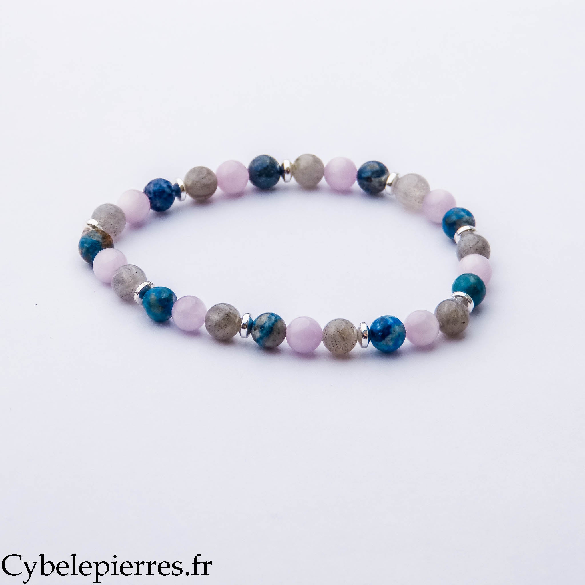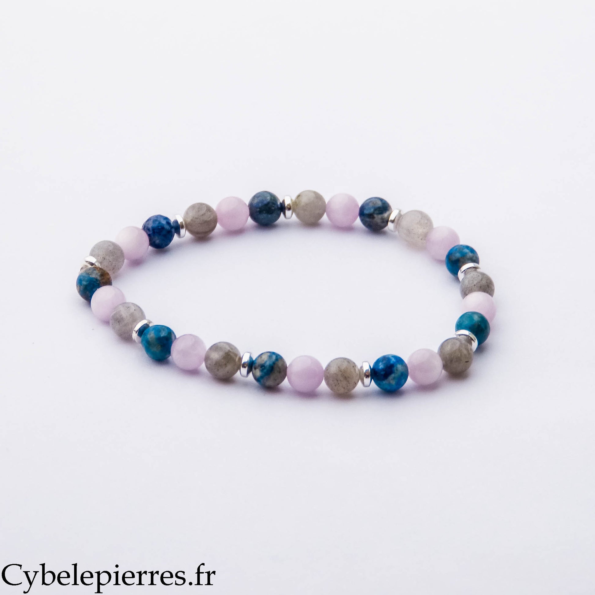 Un bracelet apaisant composé de perles naturelles de kunzite, lapis-lazuli et labradorite de 6 mm.