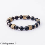 Bracelet Pouvoir intense - Pyrite carrée et Onyx mat (8mm) - 18m