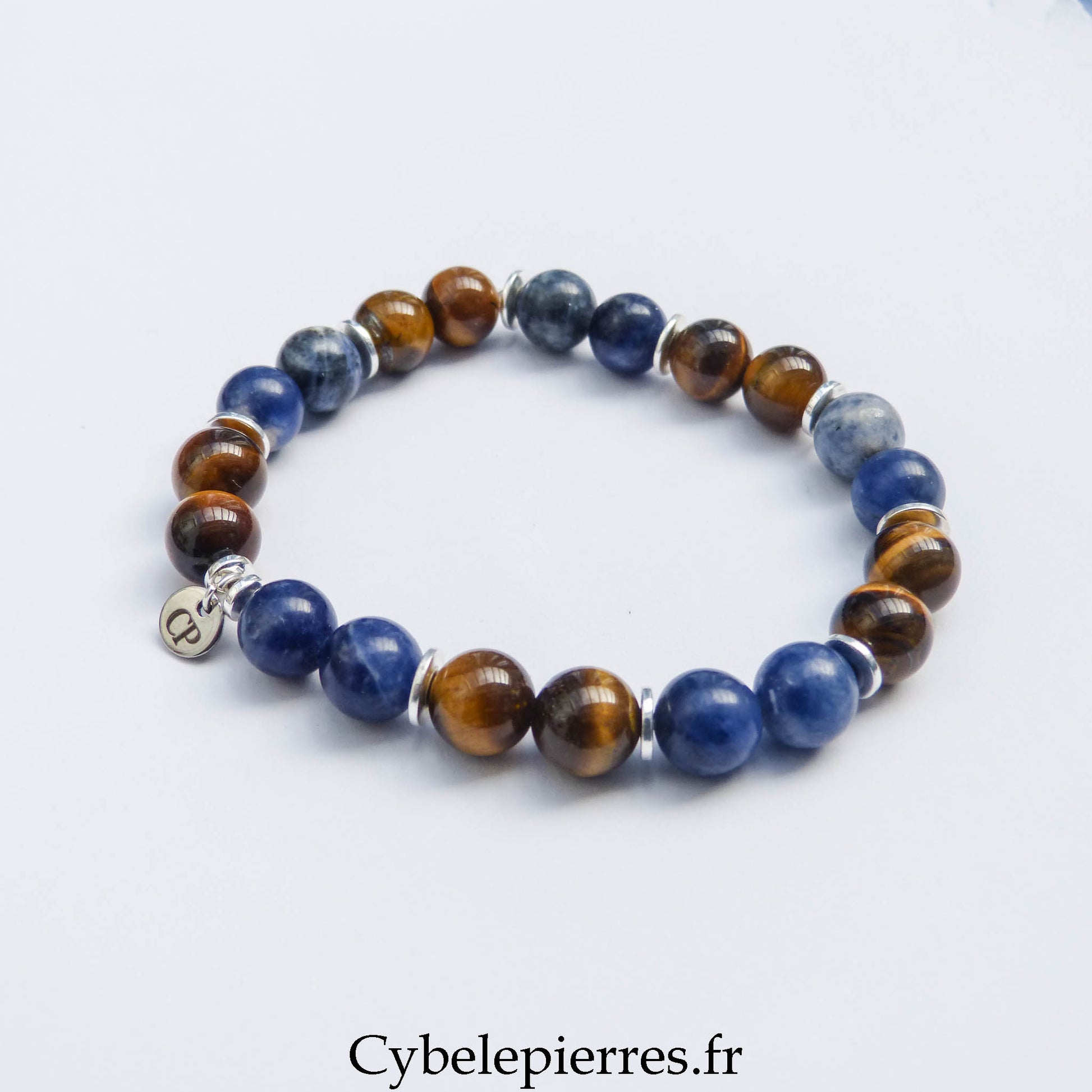 Ce bracelet Sodalite & Œil de Tigre, en perles de 8 mm, associe la stabilité émotionnelle et la clarté d’esprit, en alliant deux pierres aux vertus complémentaires.
