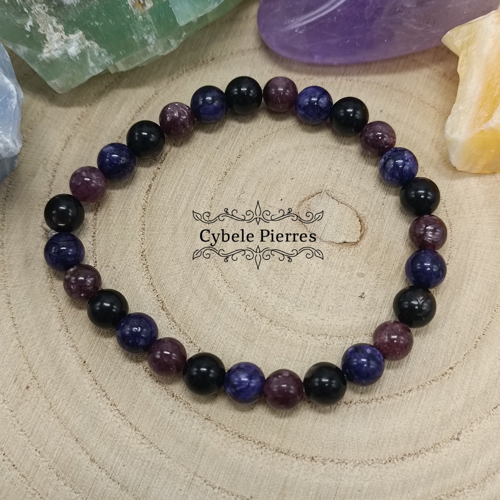 Bracelet Méditation - Hyperstène, Charoïte et Lépidolite (6mm) - 17cm