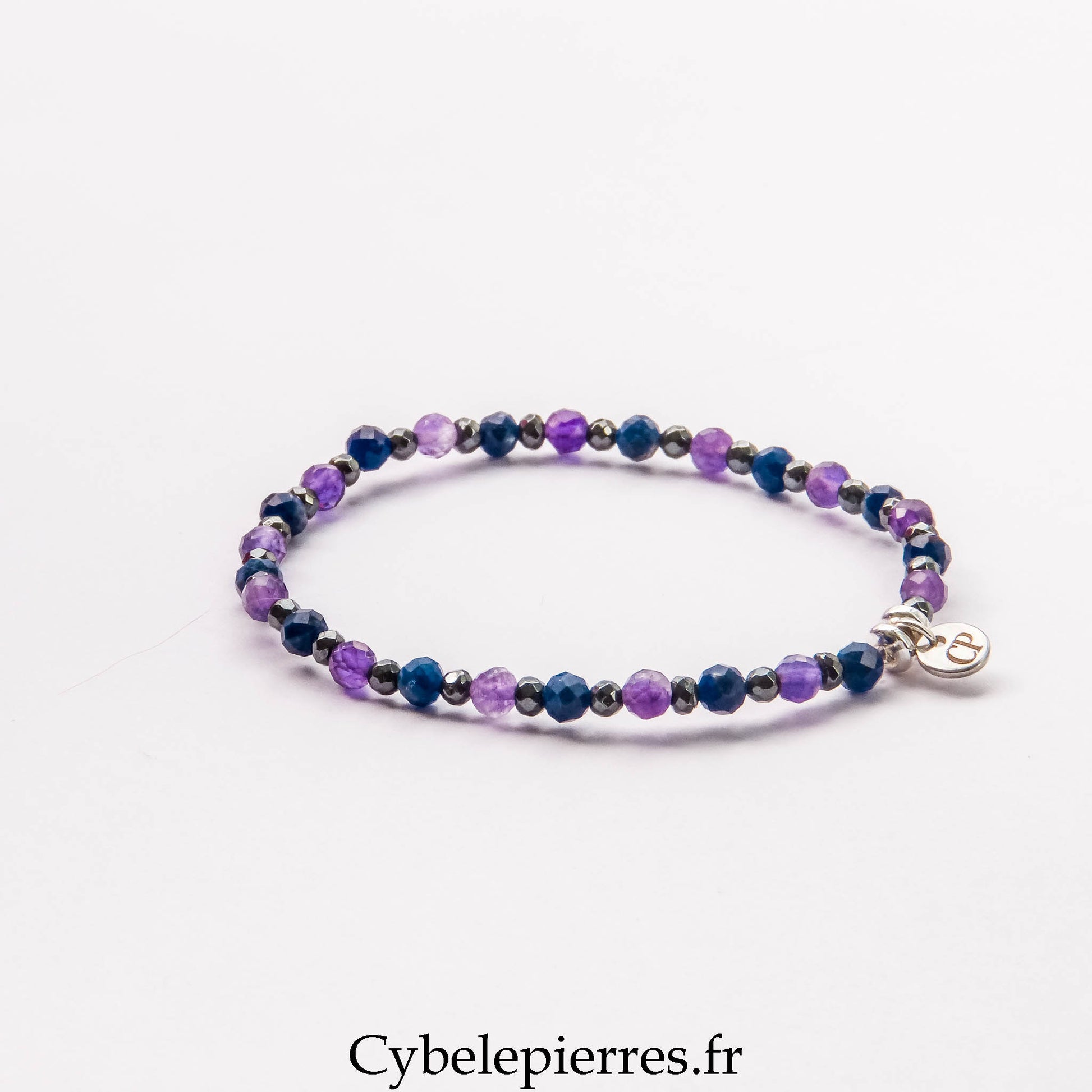 • Améthyste facettée (3 mm) : pierre de sagesse et de sérénité, elle calme les émotions, soutient la méditation et apporte une touche lumineuse grâce à ses perles facettées.