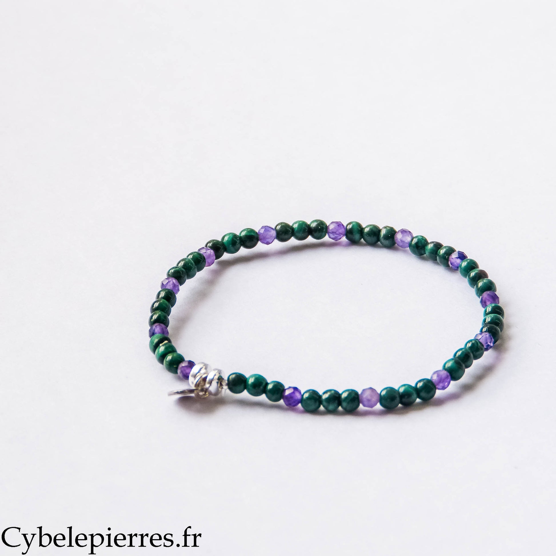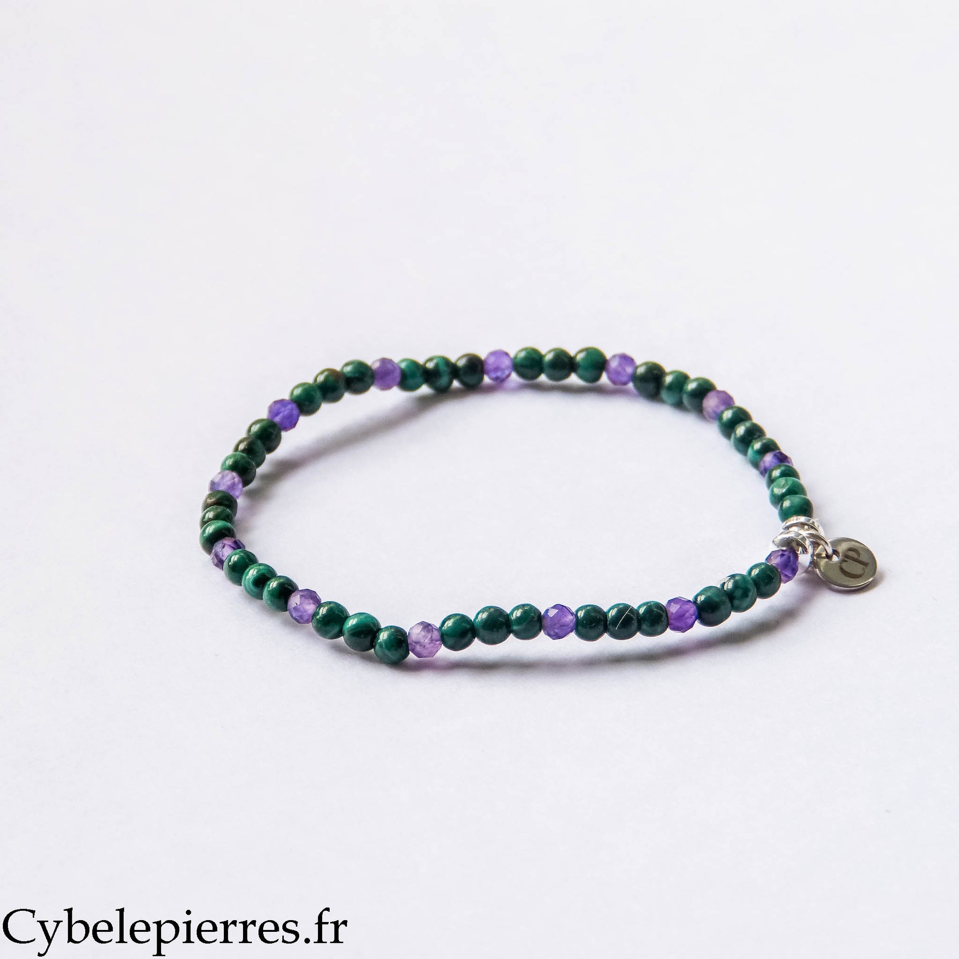 Bracelet Harmonie discrète – Malachite et Améthyste (3 mm) – 17 cm | Équilibre et Calme intérieur