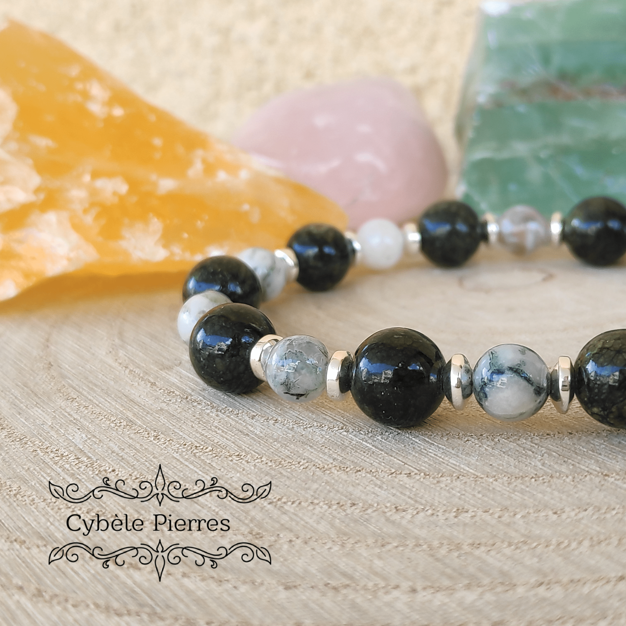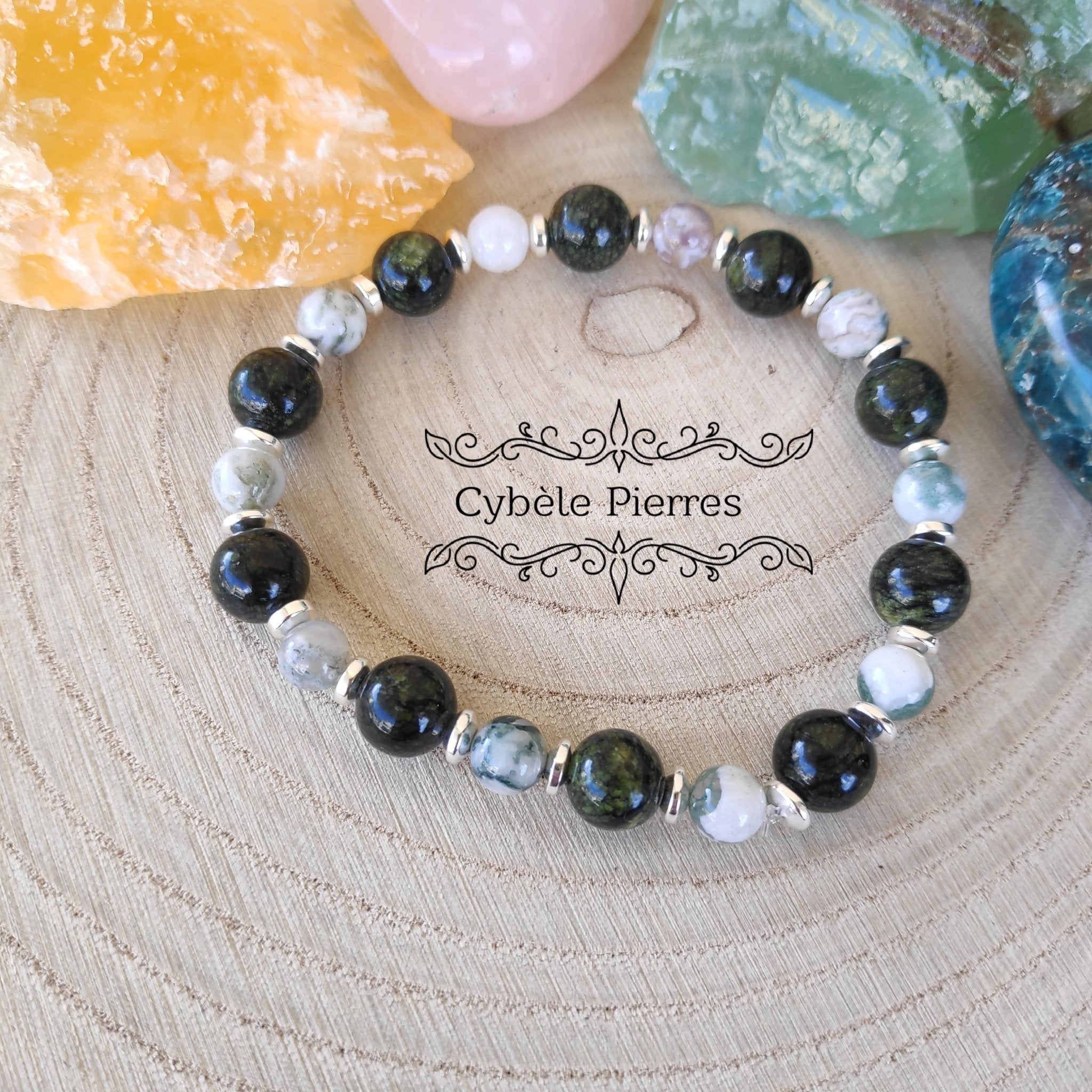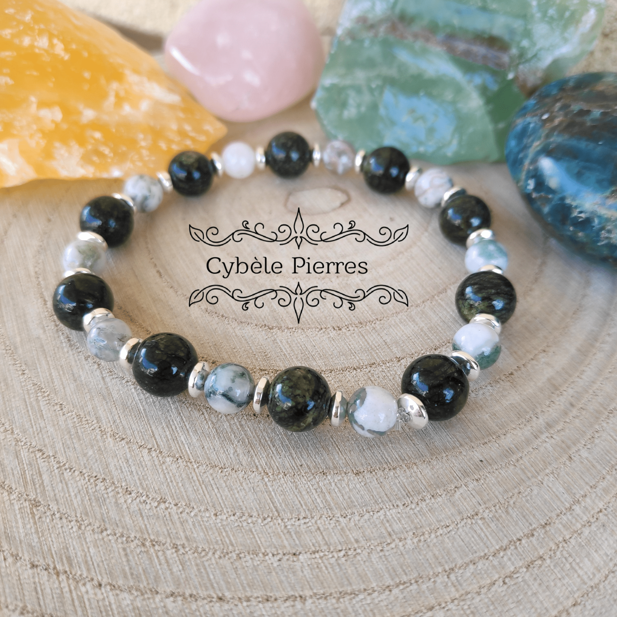 Bracelet Croissance - Serpentine et Agate Arbre (6 et 8mm) - 17cm