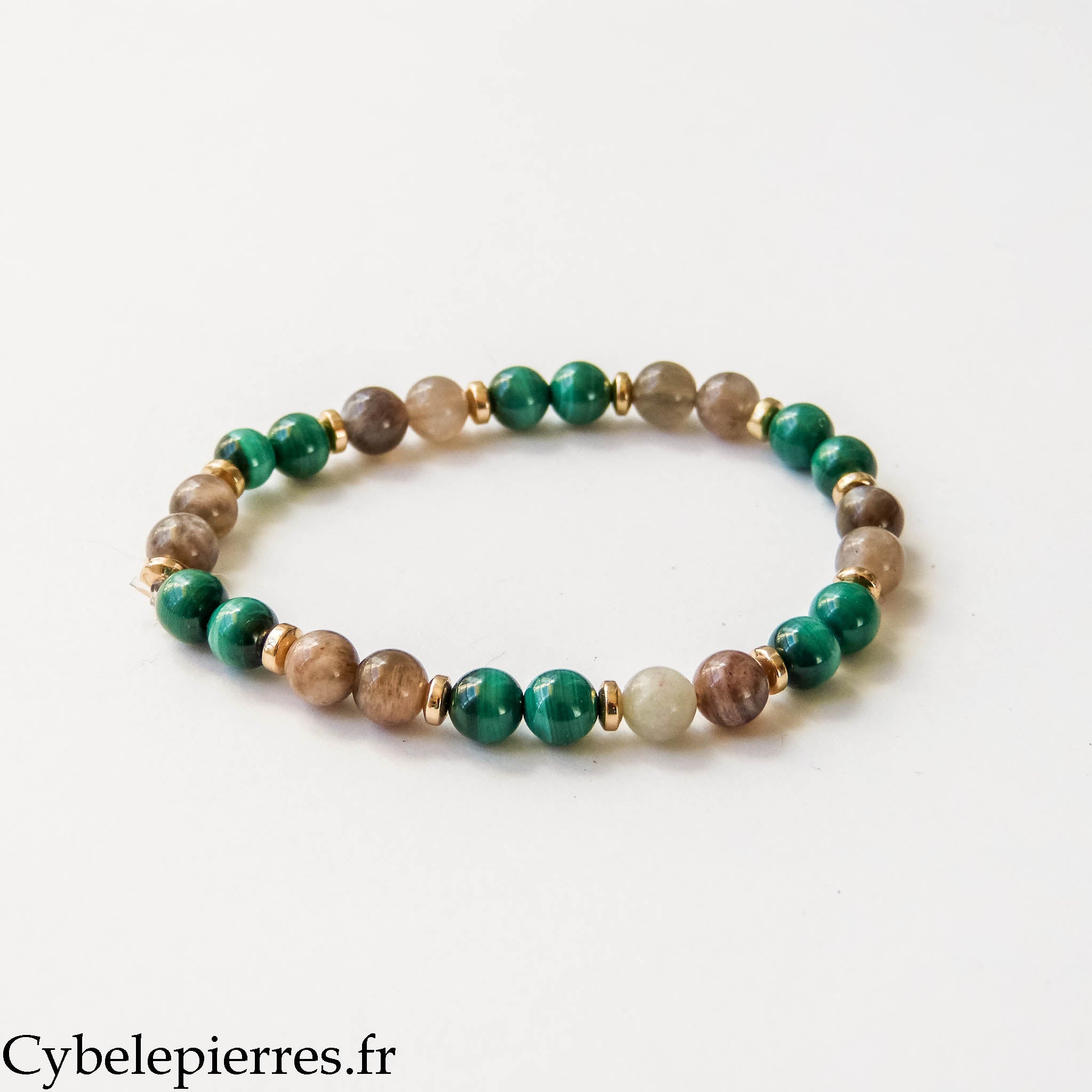 Pulsera Claridad – Piedra Luna y Malaquita (6 mm) – 17 cm | Intuición y Renovación
