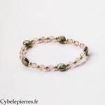 Pulsera Ops – Pirita, Aventurina roja y perlas doradas (6 y 3 mm) – 17 cm | Abundancia y Vitalidad