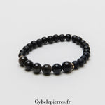 Bracelet 1er Chakra "Racine" – Obsidienne Argentée, Onyx & Hématite (6 mm) - 18 cm | Ancrage et Stabilité