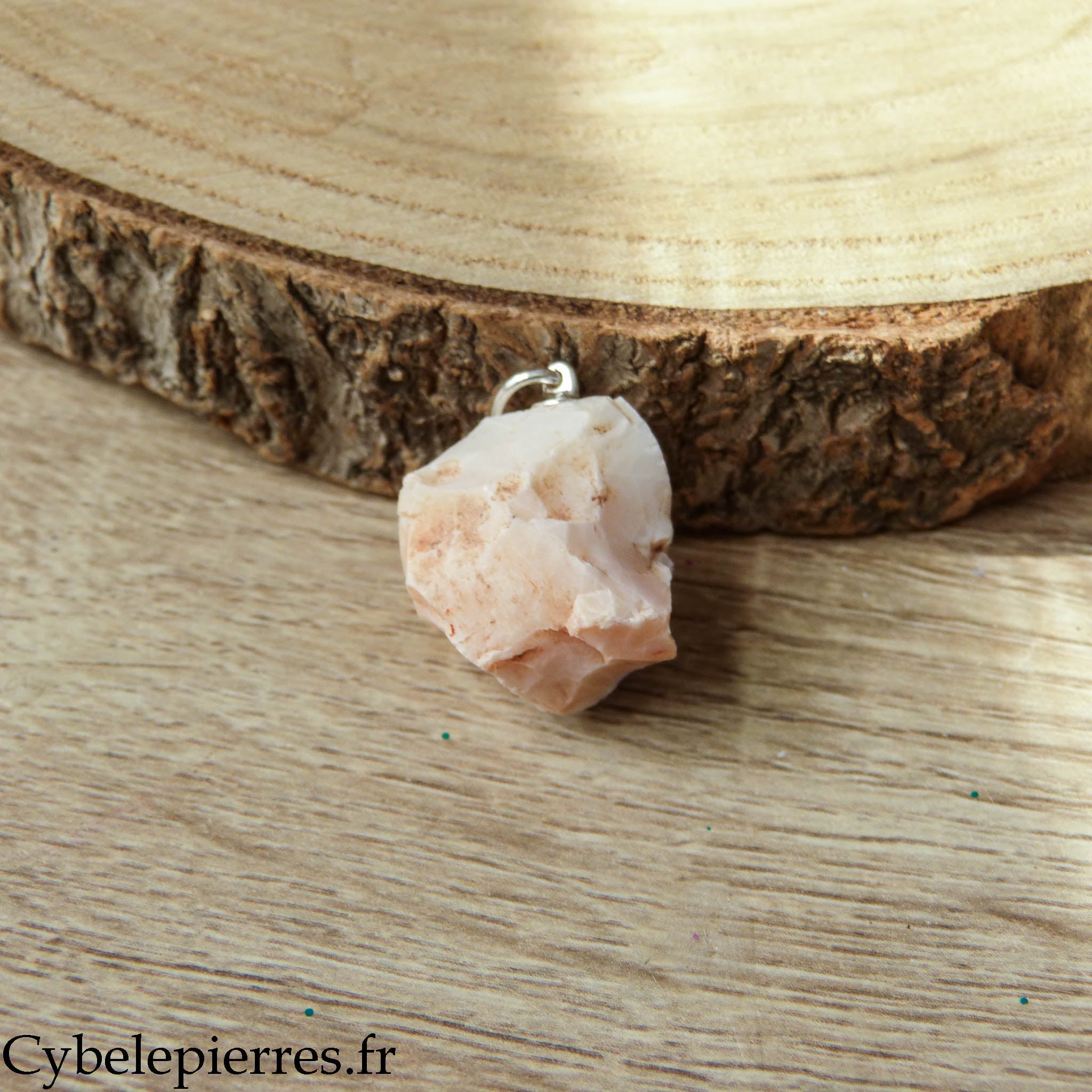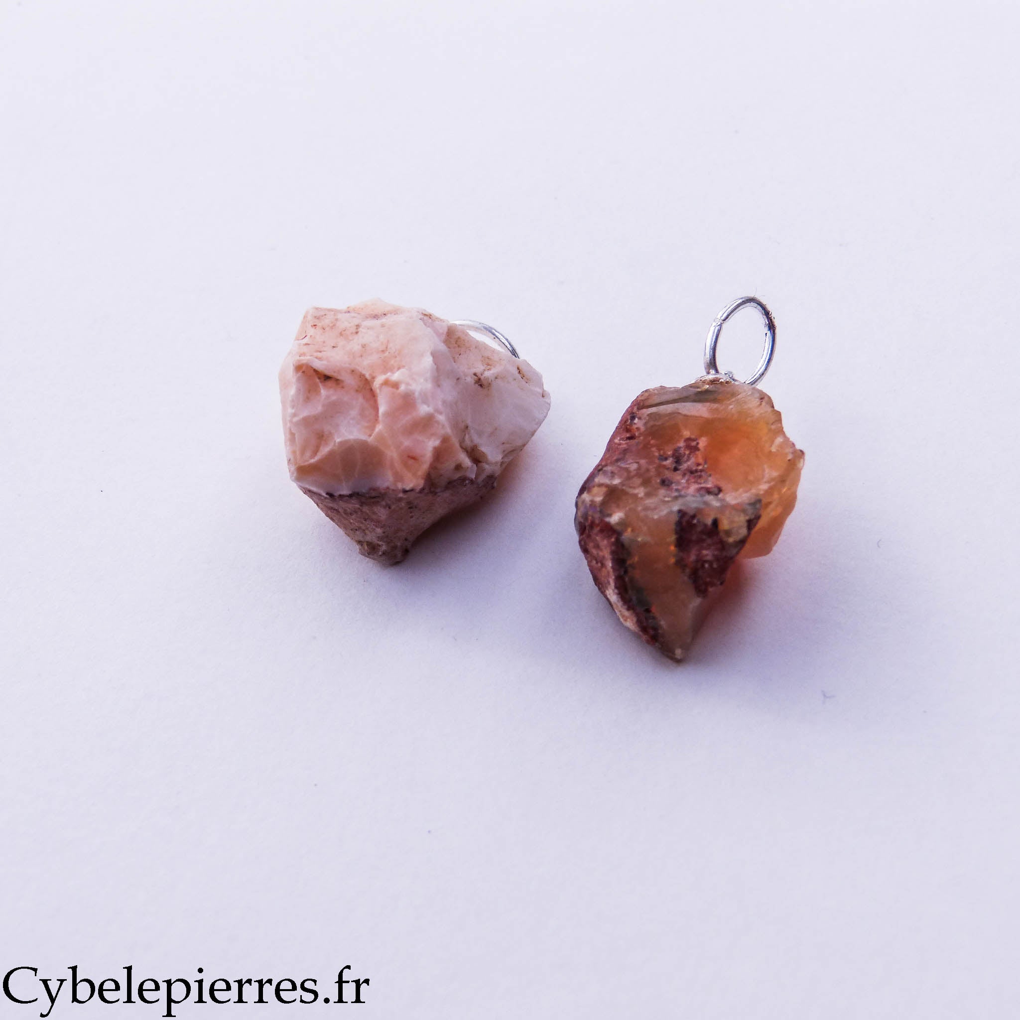 Ce pendentif présente une Opale de feu naturelle laissée à l'état brut. Sa structure non taillée permet d'apprécier la pierre telle qu'elle est extraite, avec ses reliefs naturels et ses nuances caractéristiques.